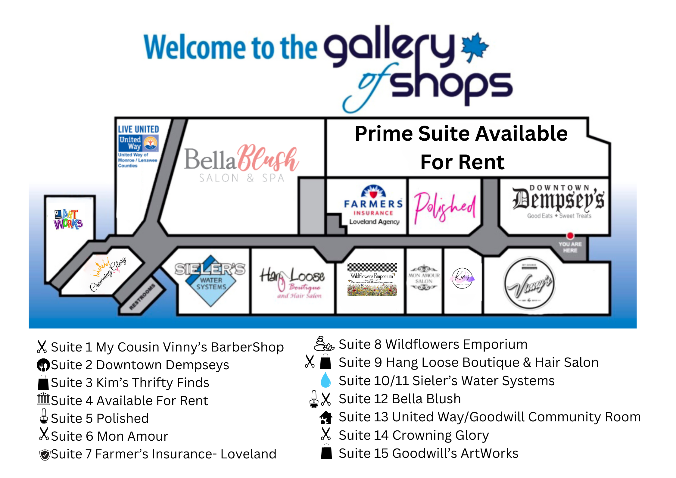 Gallery of Shops offers a unique downtown shopping destination with one-of-a-kind shops offering a variety of products, including items from local artisans in the community. It’s downtown Adrian’s mini-mall!