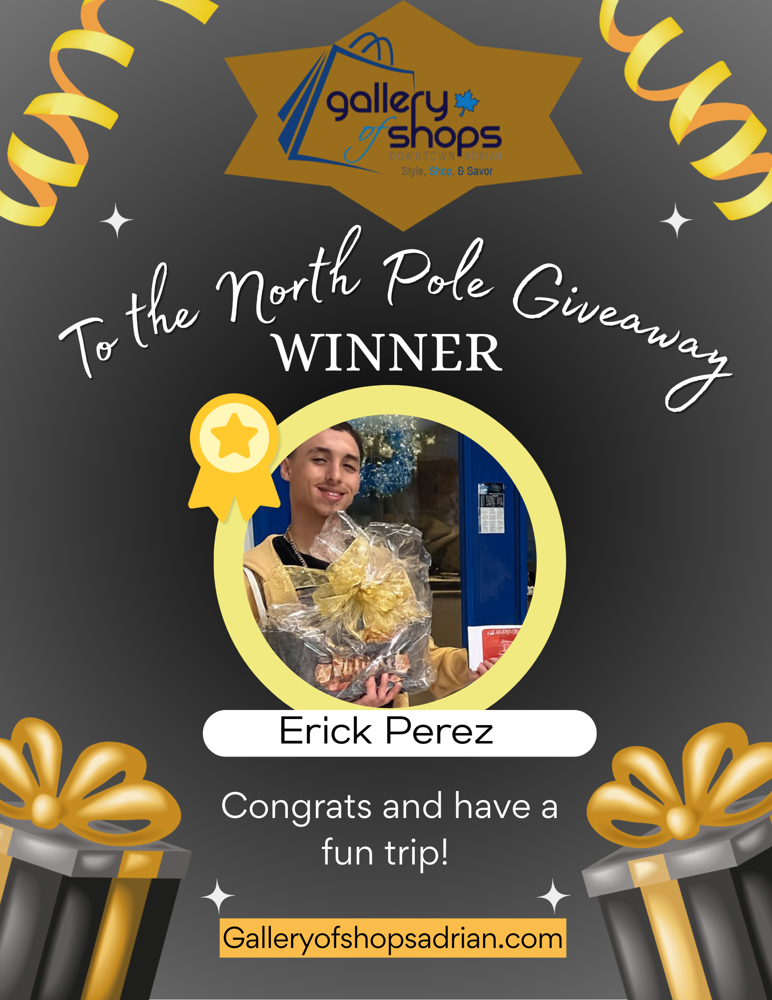 Congratulations to Erick Perez, First Friday December 5th winner of our To the North Pole Giveaway at the Gallery of Shops!Erick is taking home 4 tickets to ride the North Pole Express, plus a festive gift basket to kick off the holiday fun. Thank you to everyone who joined us for First Friday and entered the giveaway, your excitement and support make these events so special.