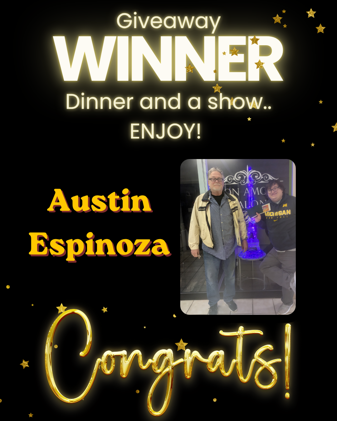 Austin won a Dinner and a Show, and we hope you have an amazing time enjoying your prize. Thank you to everyone who joined us and made the night such a fun and memorable event.